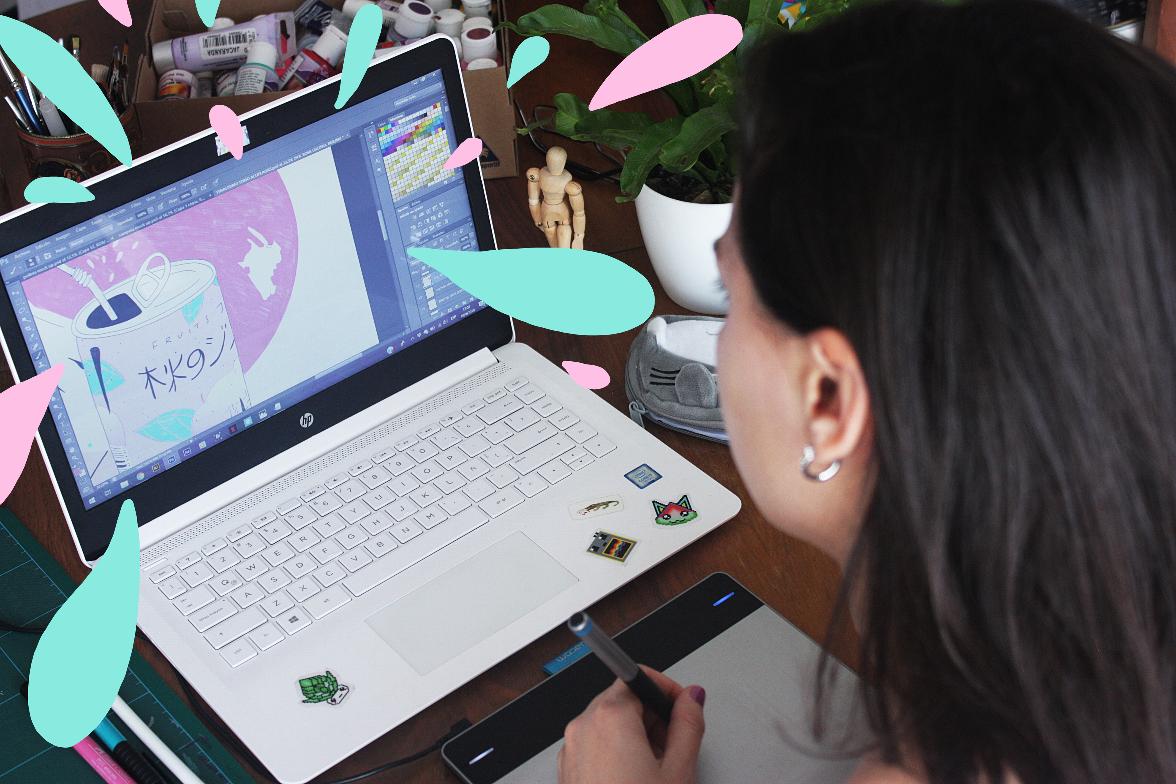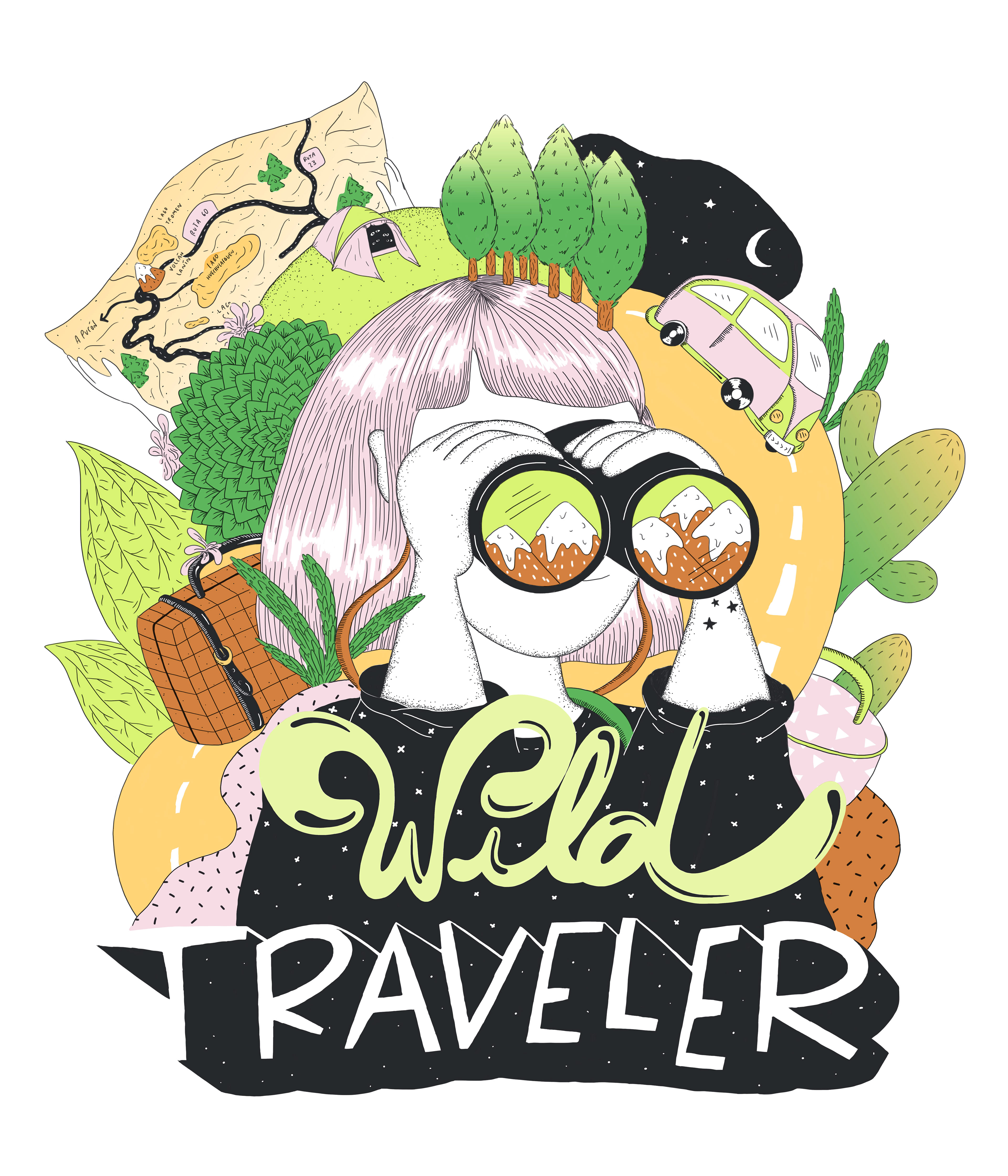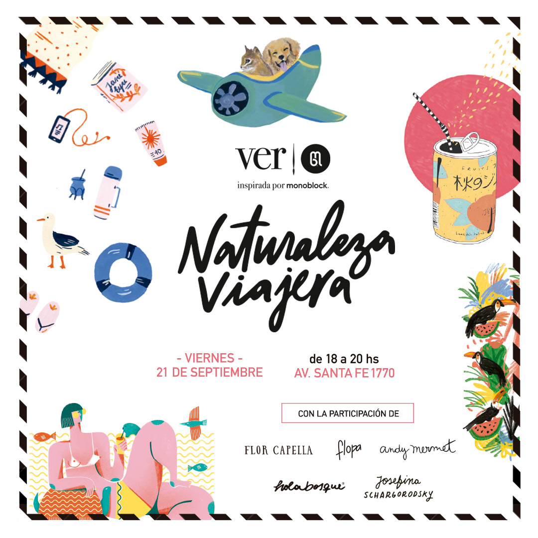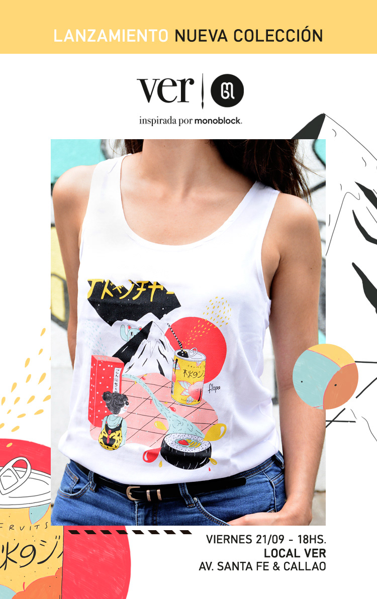 Ilustraciones para la novena colección de remeras Ver inspirada por Monoblock, "Naturaleza Viajera". Durante el lanzamiento, intervenimos prendas de jean pintadas a mano.