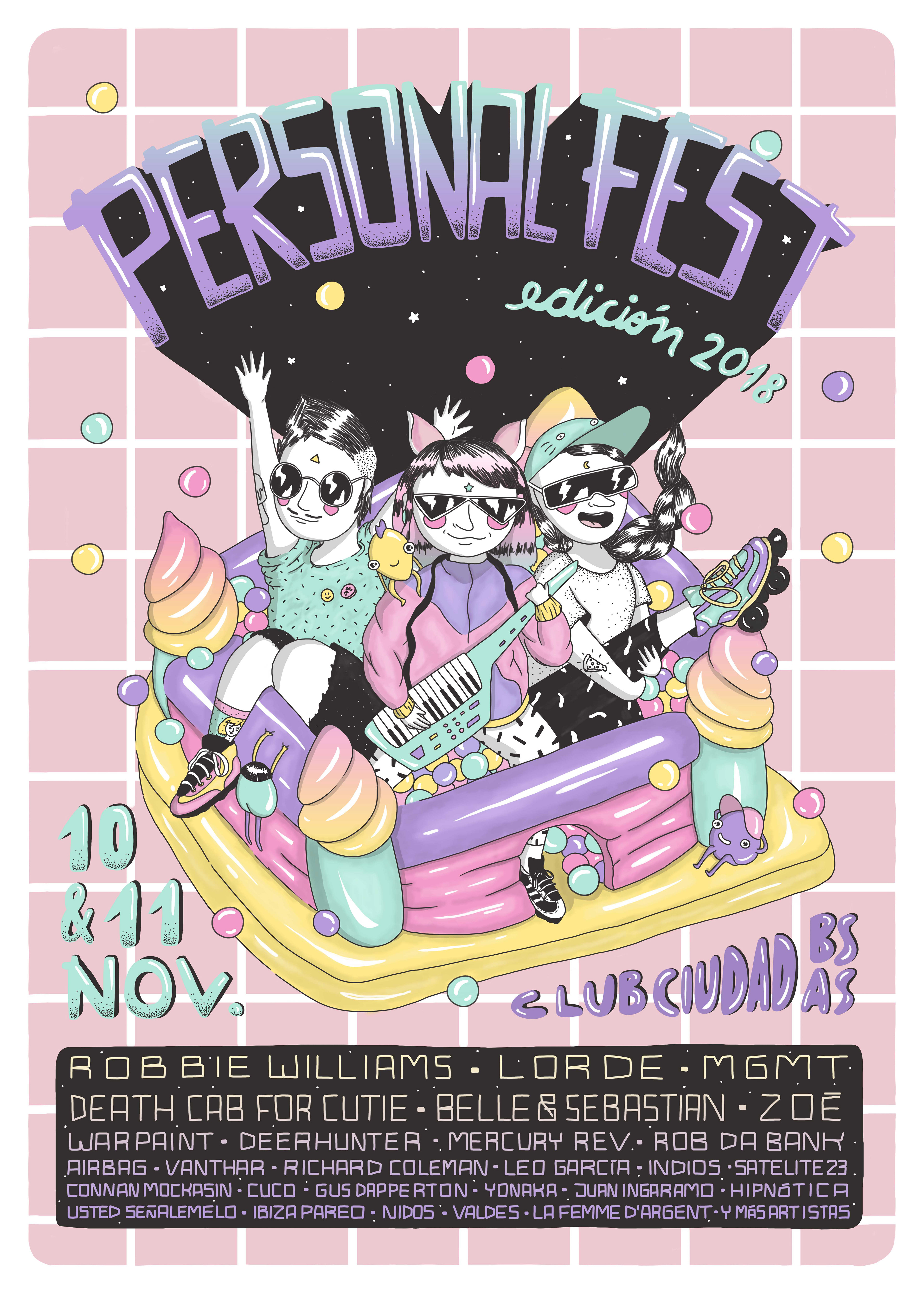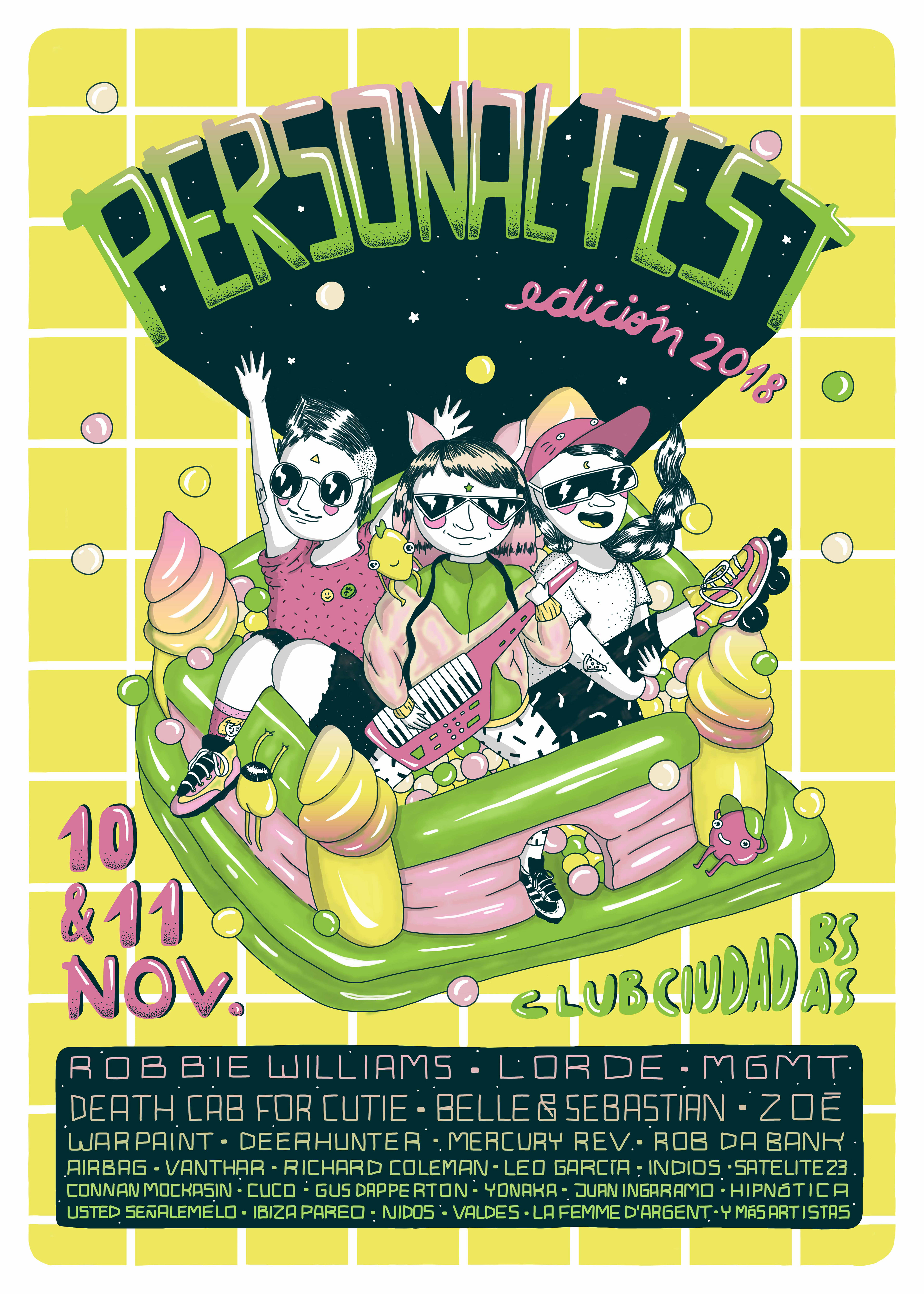 Afiche parte de la primera muestra de Gig Póster de Argentina, Poster N´Roll, presentada por Trimarchi para Personal Fest.